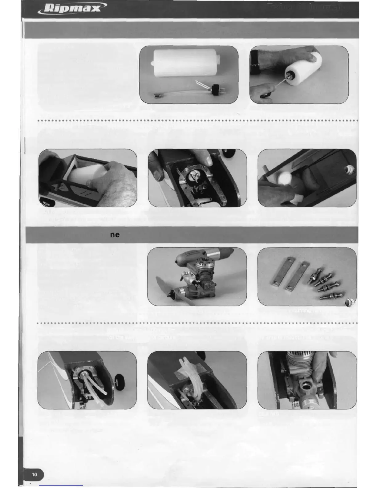 the opening at the centre of the metal engine mount. Using the foam packing supplied with the fuel tank, support the tank by