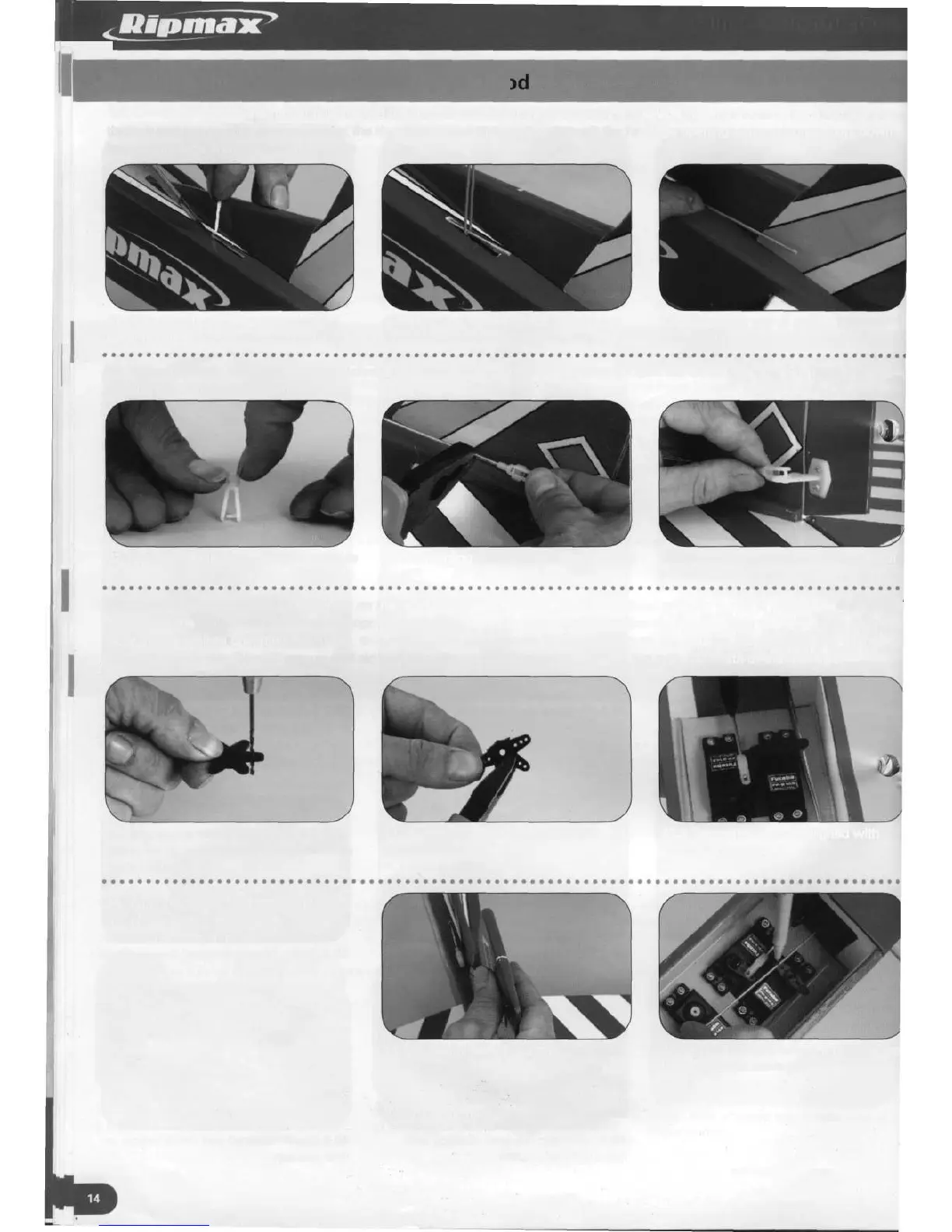 through and remove the covering. Insert the threaded end of the pushrod through the fuselage opening at the wing position, down