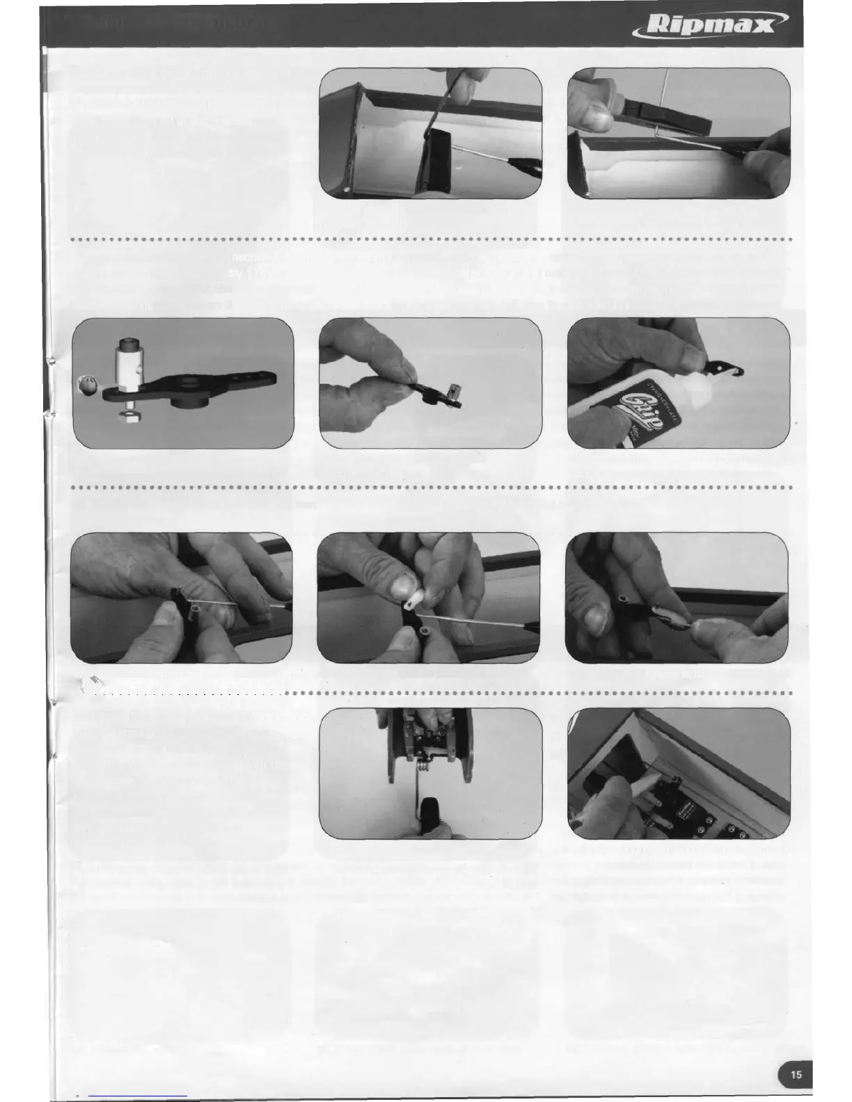 47. Thread the rudder servo arm over the bend formed on the rudder pushrod followed by a swing keeper, snapping the