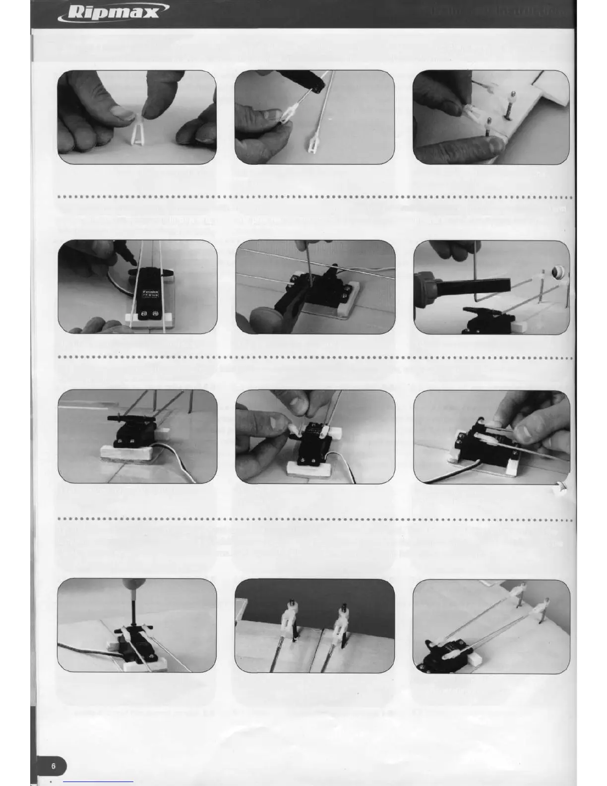 9. Thread a plastic clevis keeper onto each of the two clevises. Holding the threaded pushrods using pliers screw the two nylon