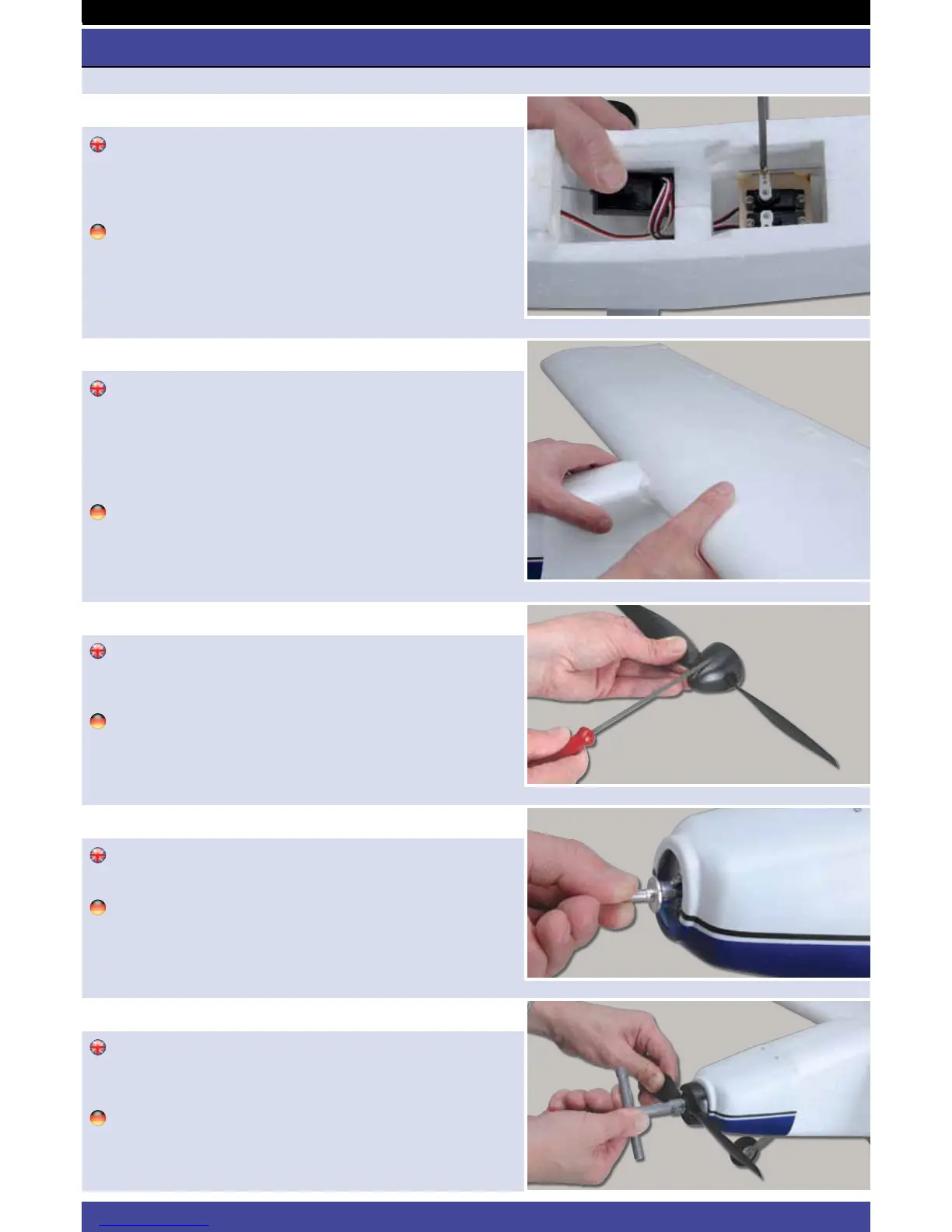 Rumpf eingeklemmt sind. Danach schrauben Sie den Flügel