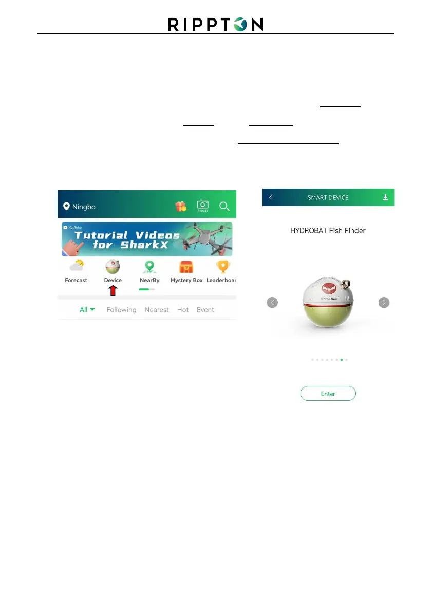 4) Enter “Rippton” App on your mobile device, tap “Device” and enter “Fish