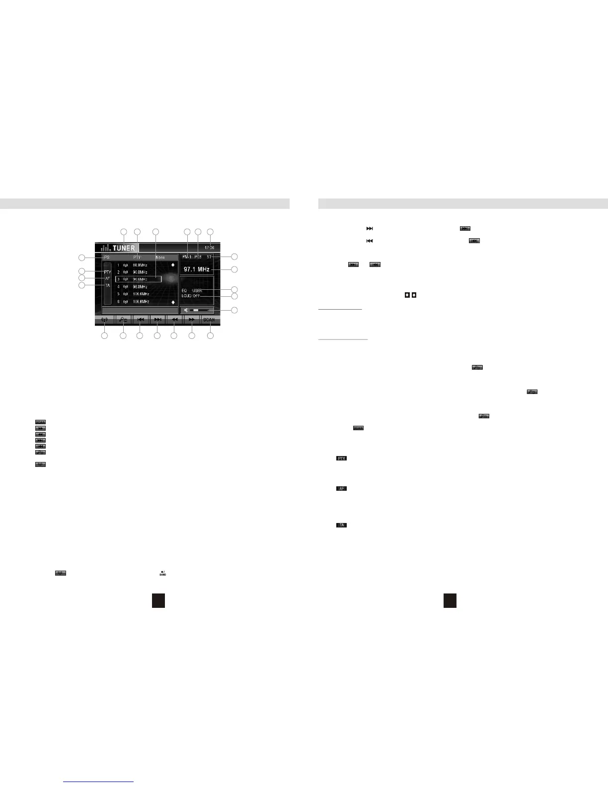 17. : Touch to automatically scan and store stations in current radio band. You also can press the