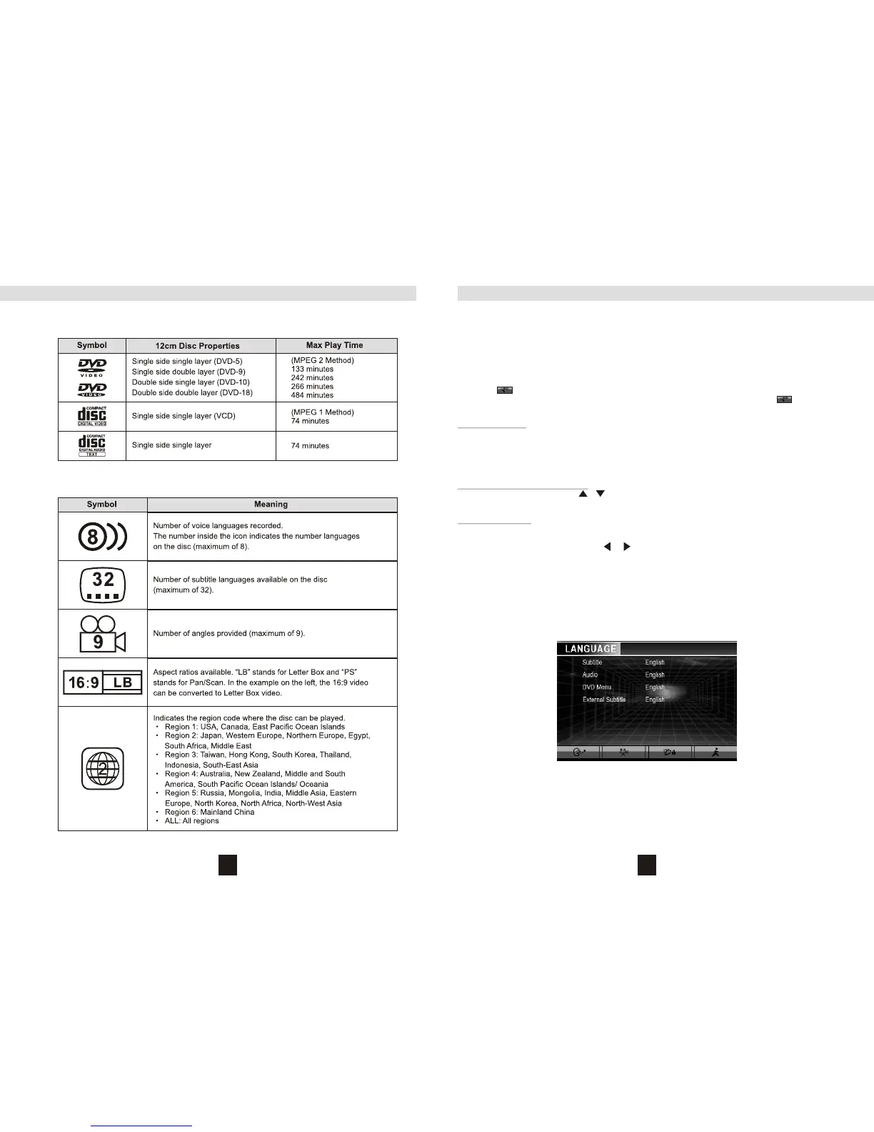 If DVD is selected as the current playing source, you can access DVD setup screen through following