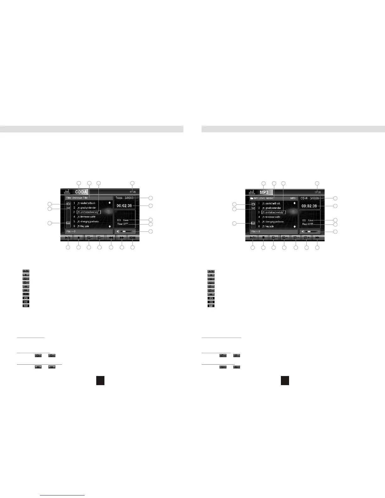 After inserting a MP3/WMA disc, files will play in the sequence of the all directory. In playing back,