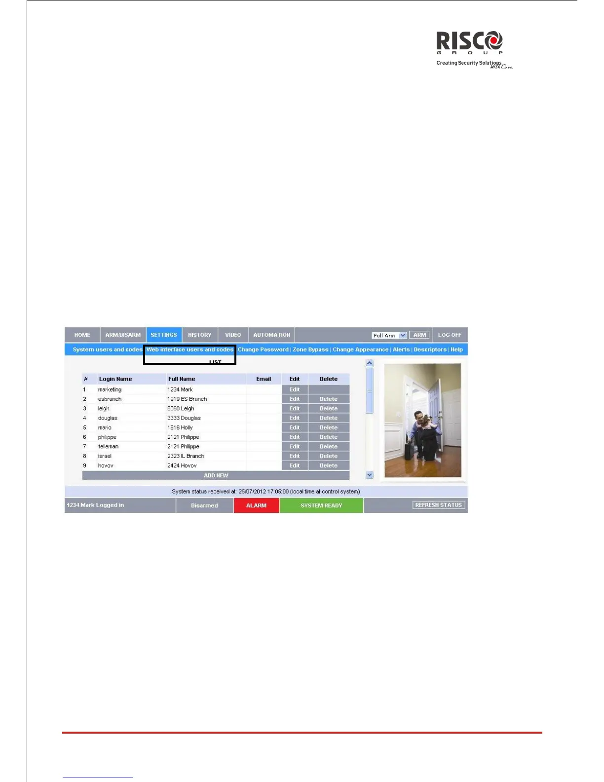 On The Main Page menu, click Settings, then Web Interface Users and Codes, the