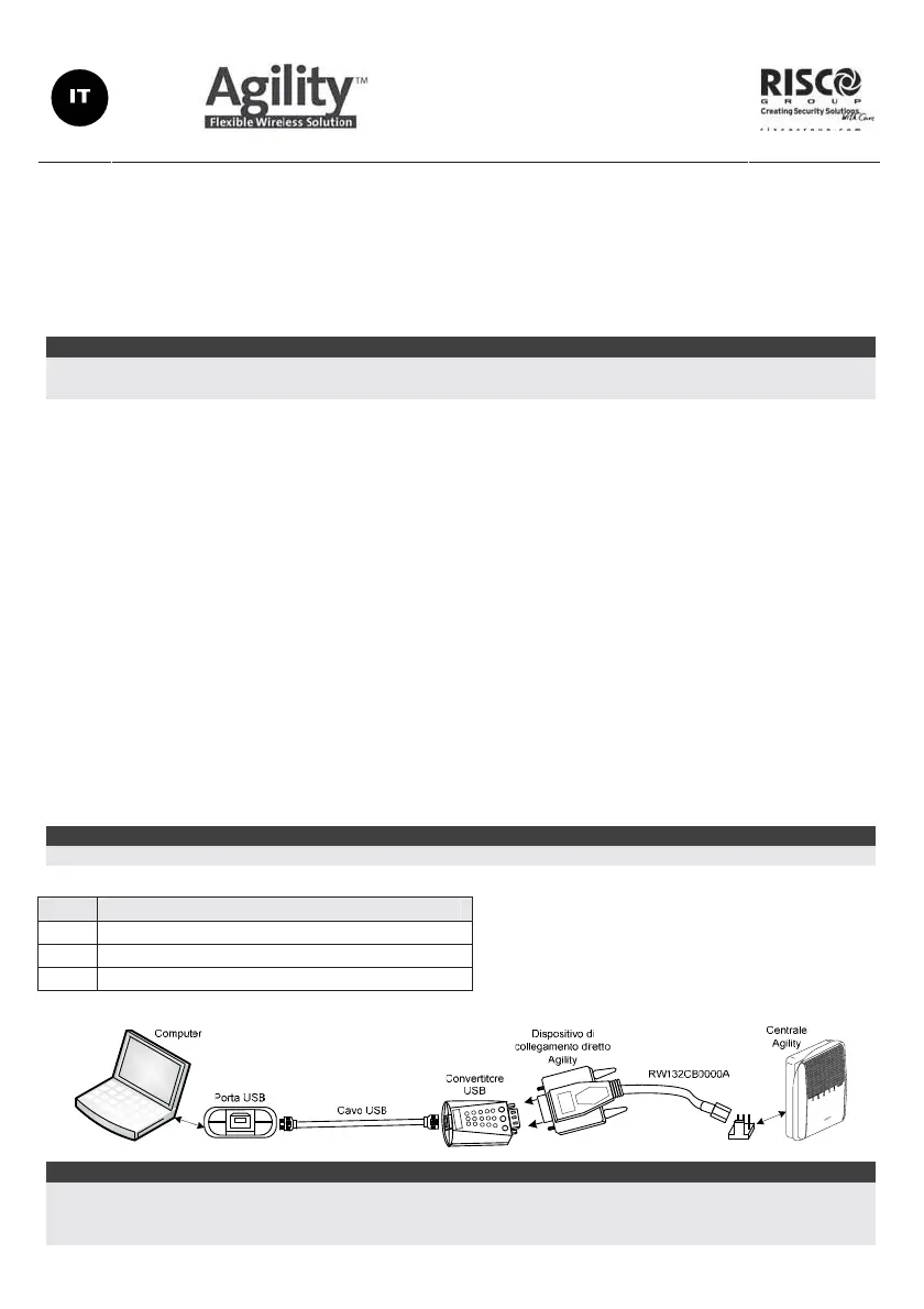 L’adattatoreȱ USB/RS232ȱ converteȱ iȱ datiȱ traȱ ilȱ protocolloȱ USBȱ eȱ leȱ centraliȱ d’allarmeȱ RISCO,ȱ sfruttandoȱ ilȱ