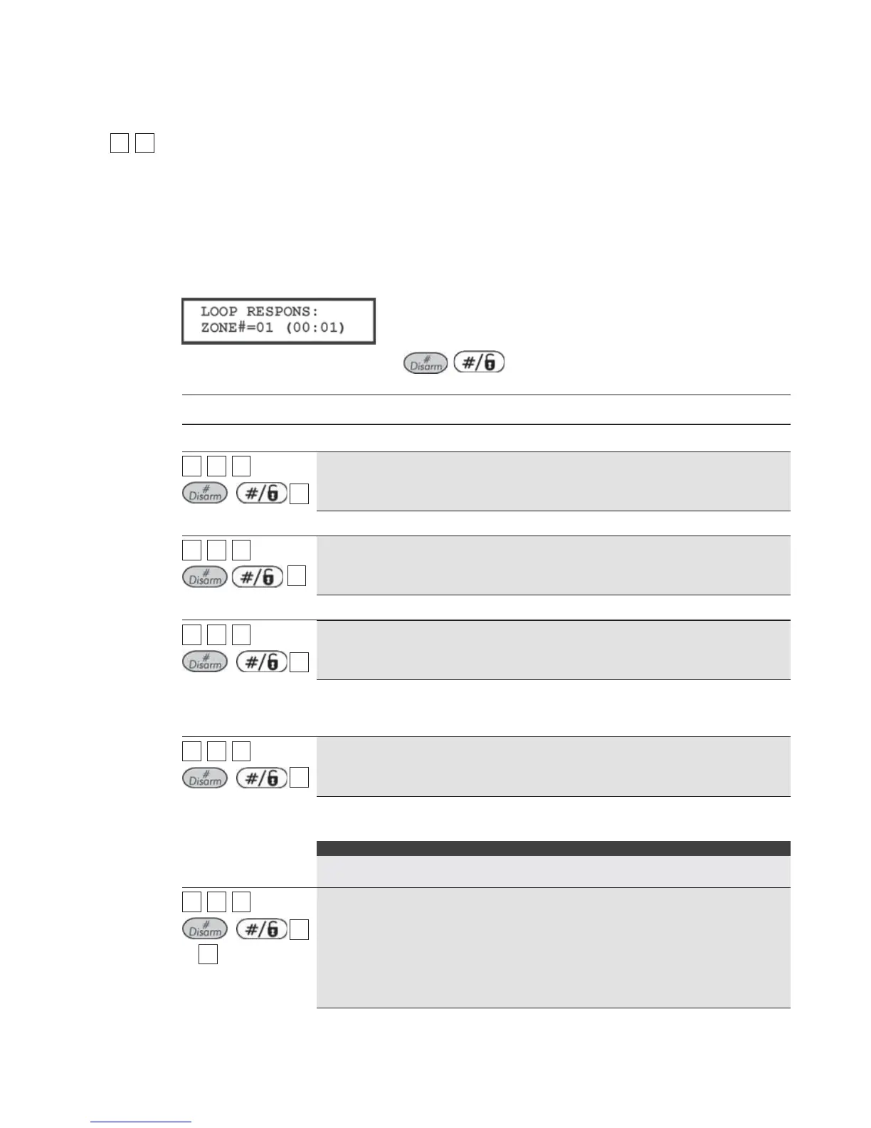 2 From the Zones menu, press [6] to access the Loop Response menu options. The following