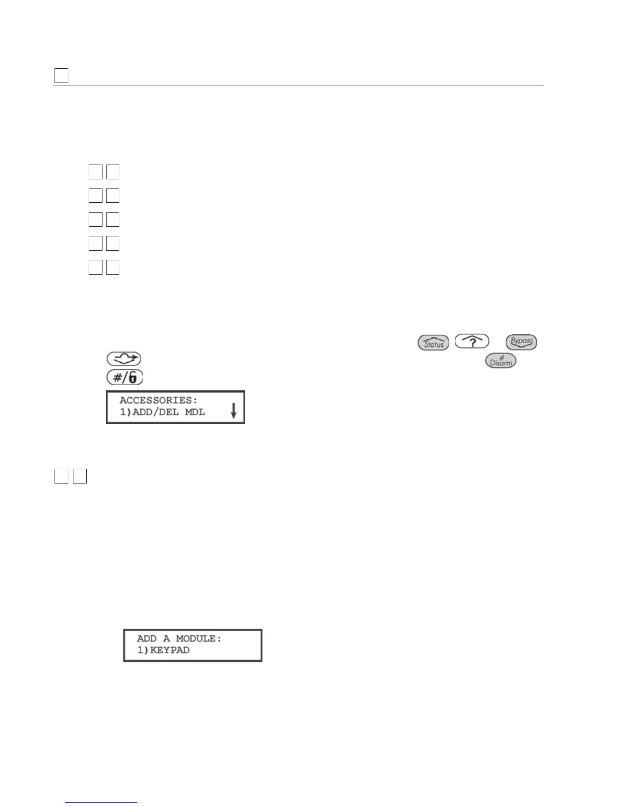 2 From the Accessories menu, press [1] to access the Add Delete Module menu options.