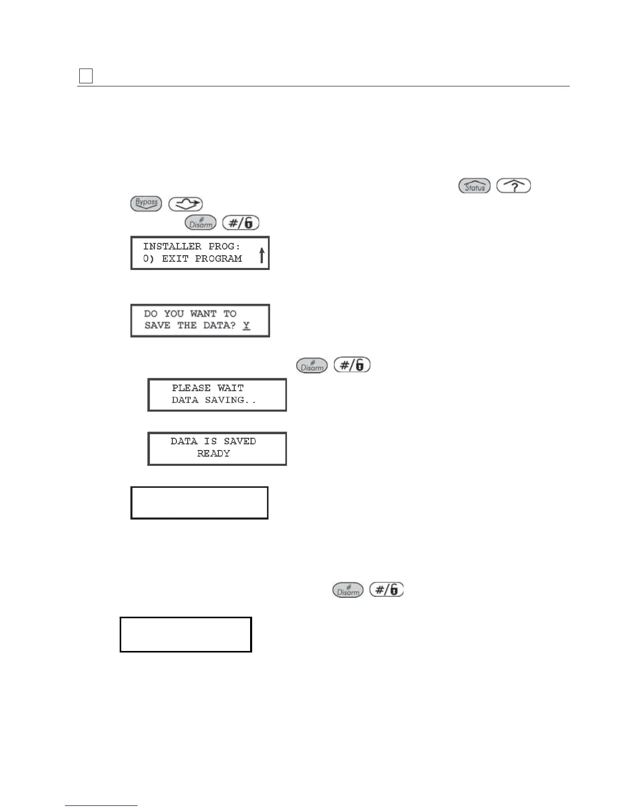 When the save function is complete and no tamper fault exists, the keypad displays
