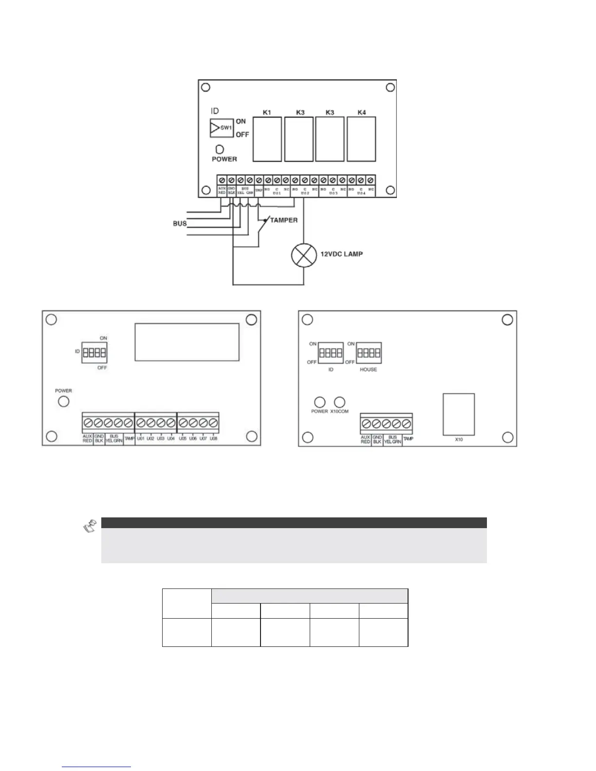 Output expansion module to the Main Panel's 4-wire BUS, as follows: