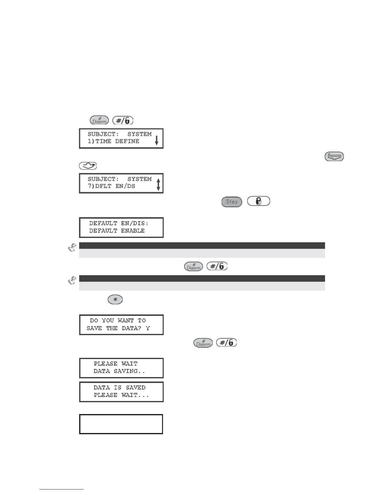 keypad displays the following messages: