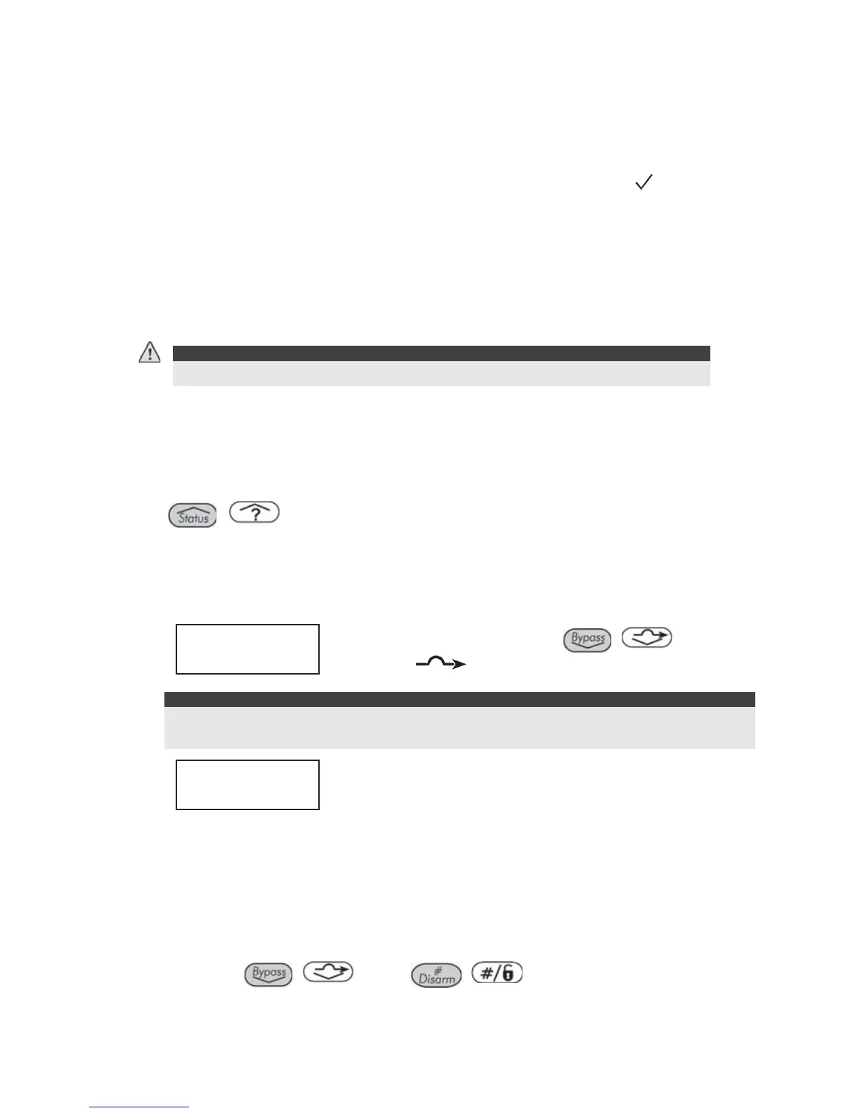 not light, nor can the system be readily armed. Bypassing a zone enables
