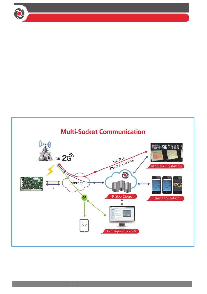 • Monitoring Station: Direct connection using SIA-IP, or with the RISCO IP
