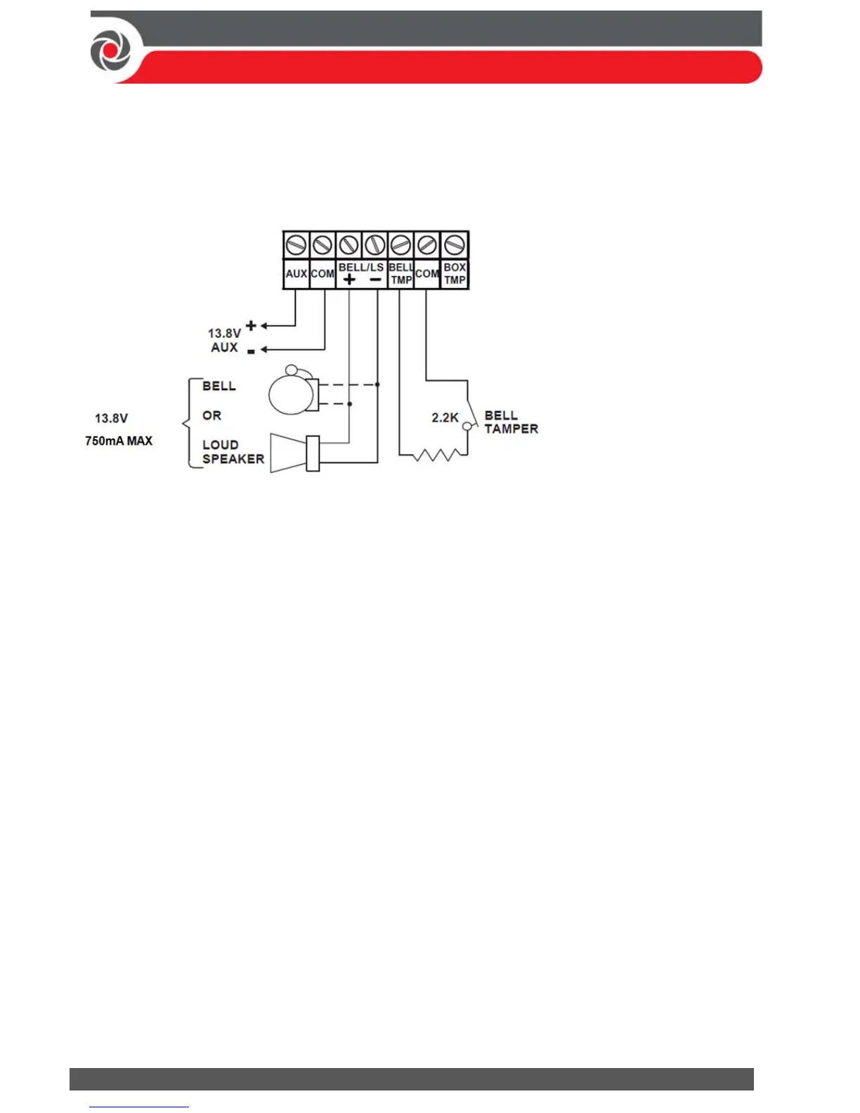 With main panel power removed, connect the bell tamper to the BELL TMP and