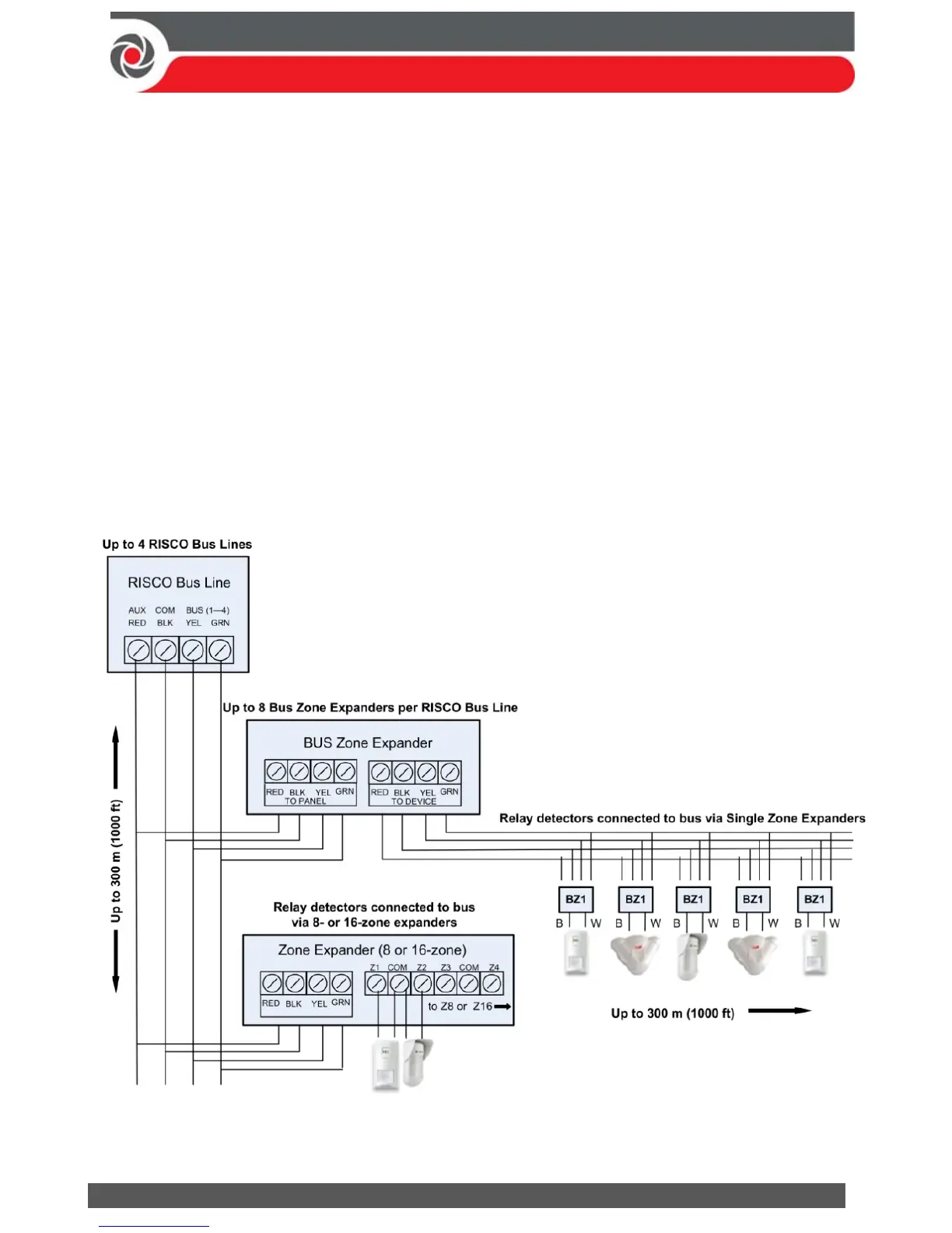 Connect relay detector(s) onto RISCO bus lines, each using a dedicated Single Zone