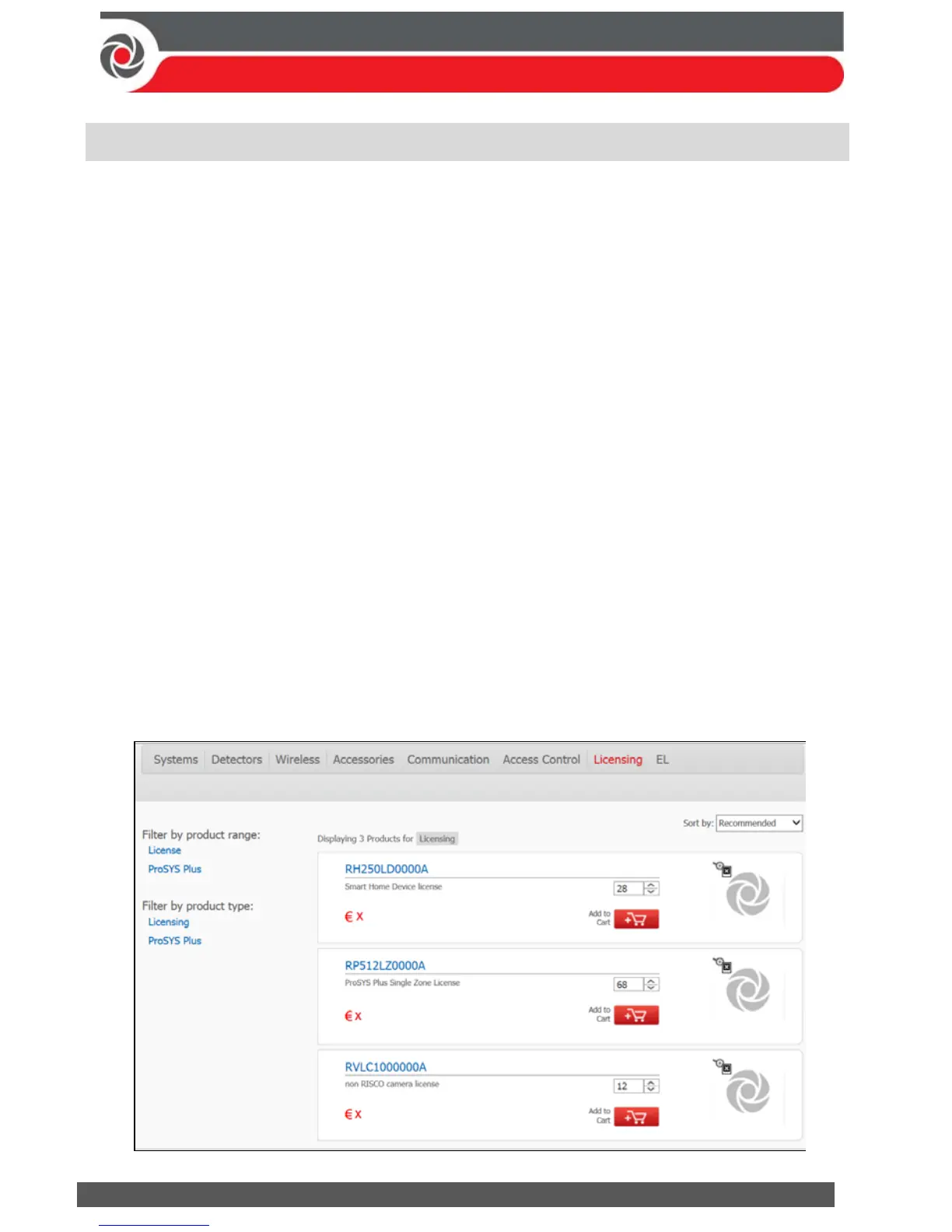 1. License purchasing: The RISCO customer can purchase an allocation of licenses