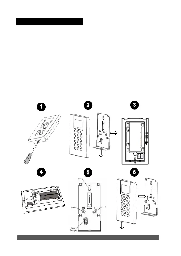 7. Mount the keypad to the mounting bracket and insert the fastening screw to lock