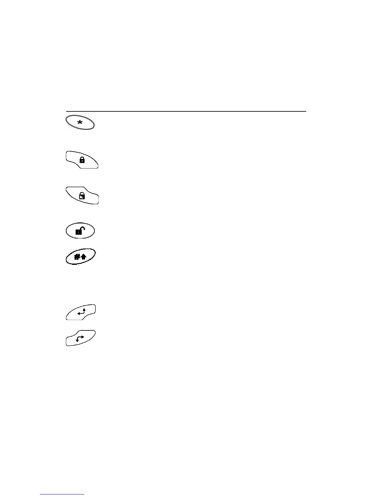 keys. Refer to table on