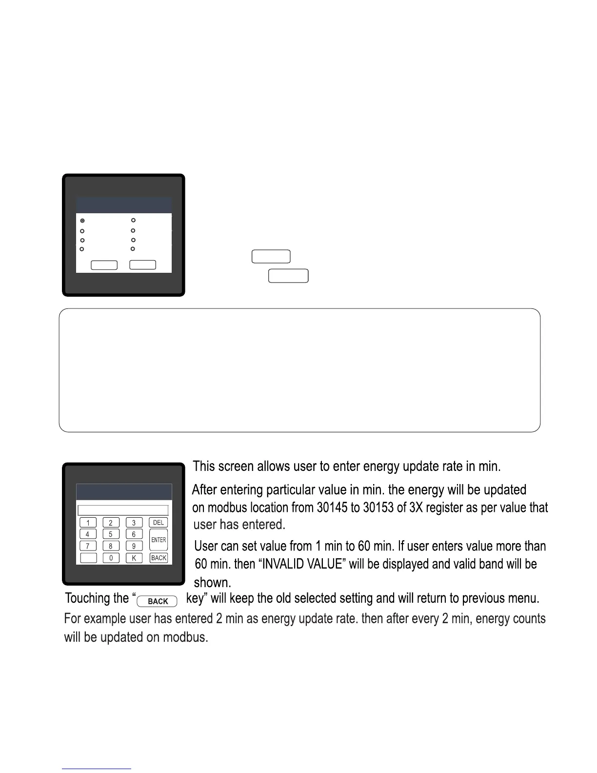 2) If Energy Resolution is set to kW & energy digit reset count is set to 12, Energy screen