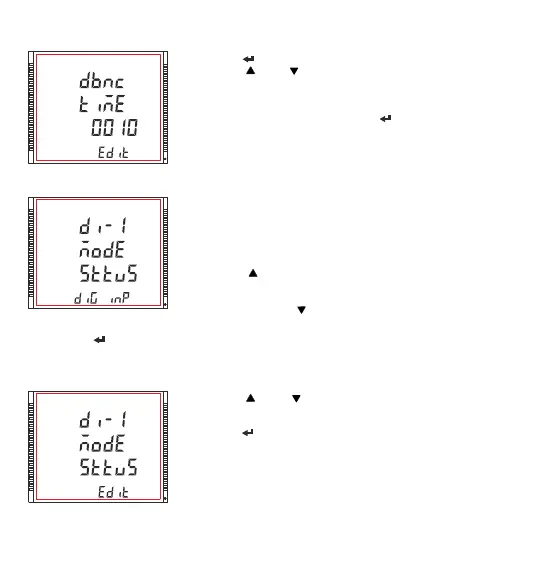 advances to “ De-bounce time” menu screen (see Section 3.2.7.1).