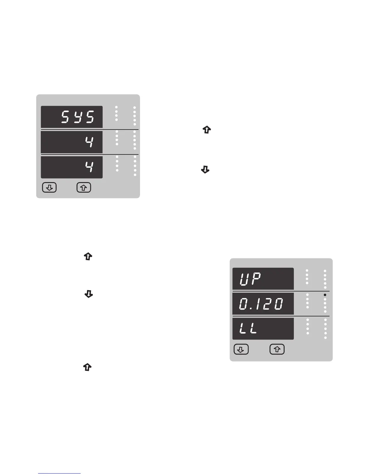 Pressing the “ Up” key sets the displayed value and