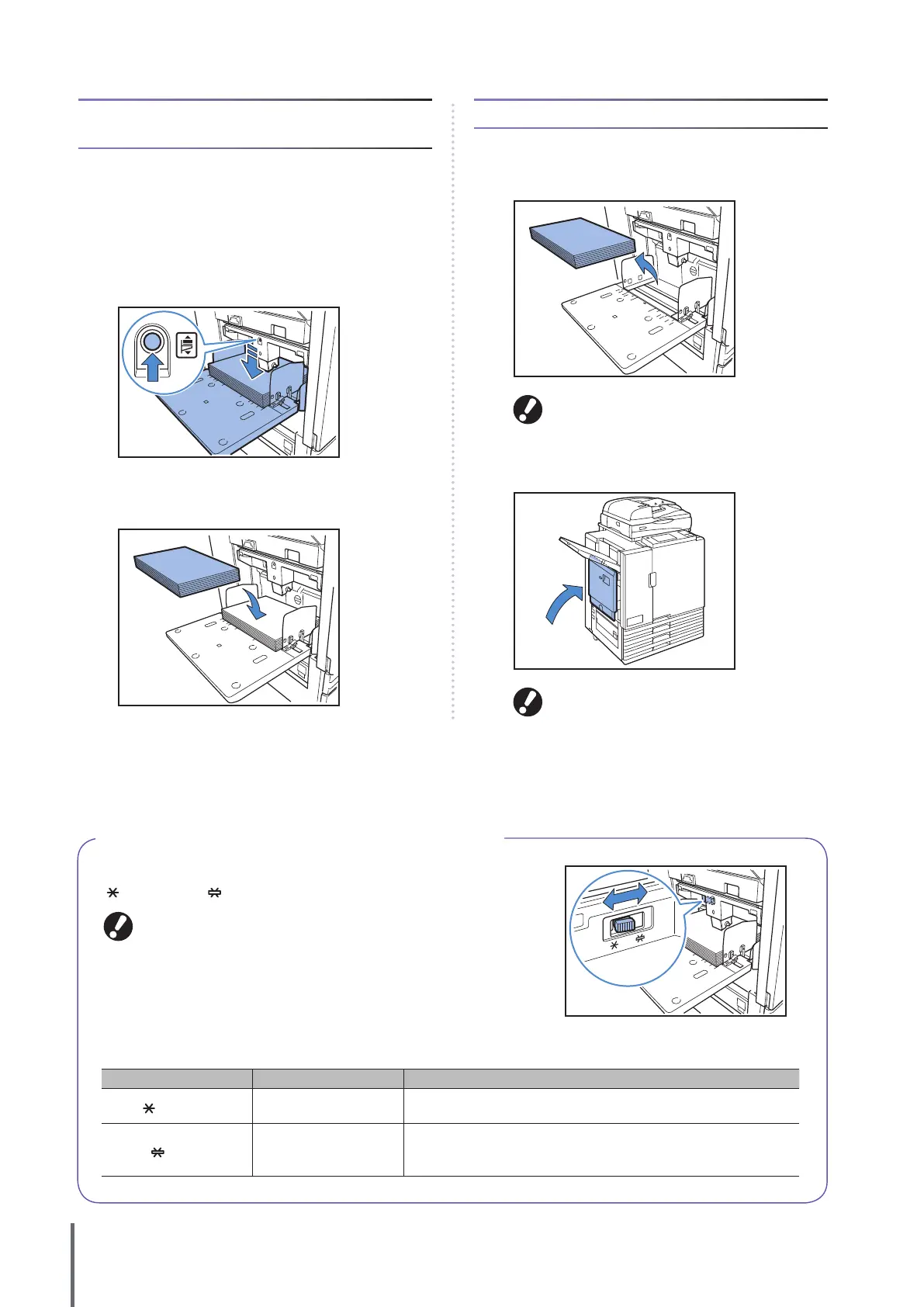 sheets or when switching paper. Note that the standard tray is