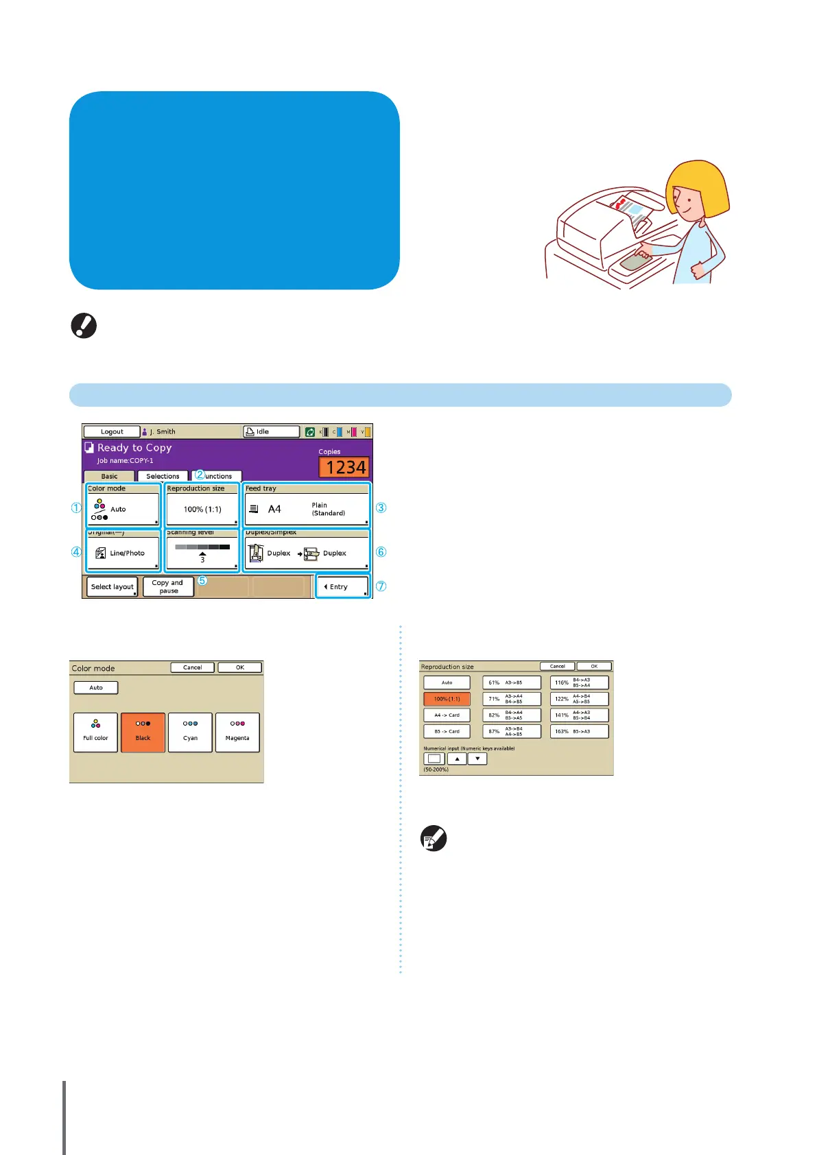 mode. Basic copying functions can be completed on this