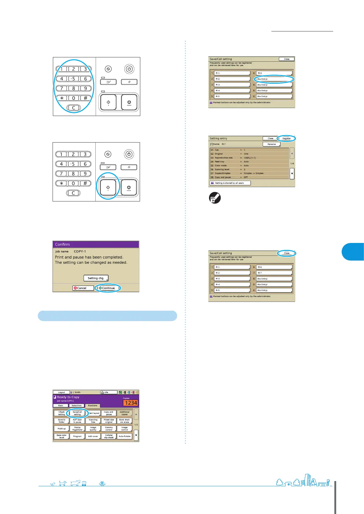On the [Functions] screen, press [Save/Call setting].