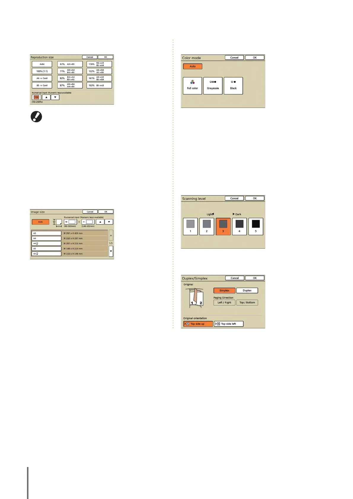 When scanning duplex originals, specify the type of original.