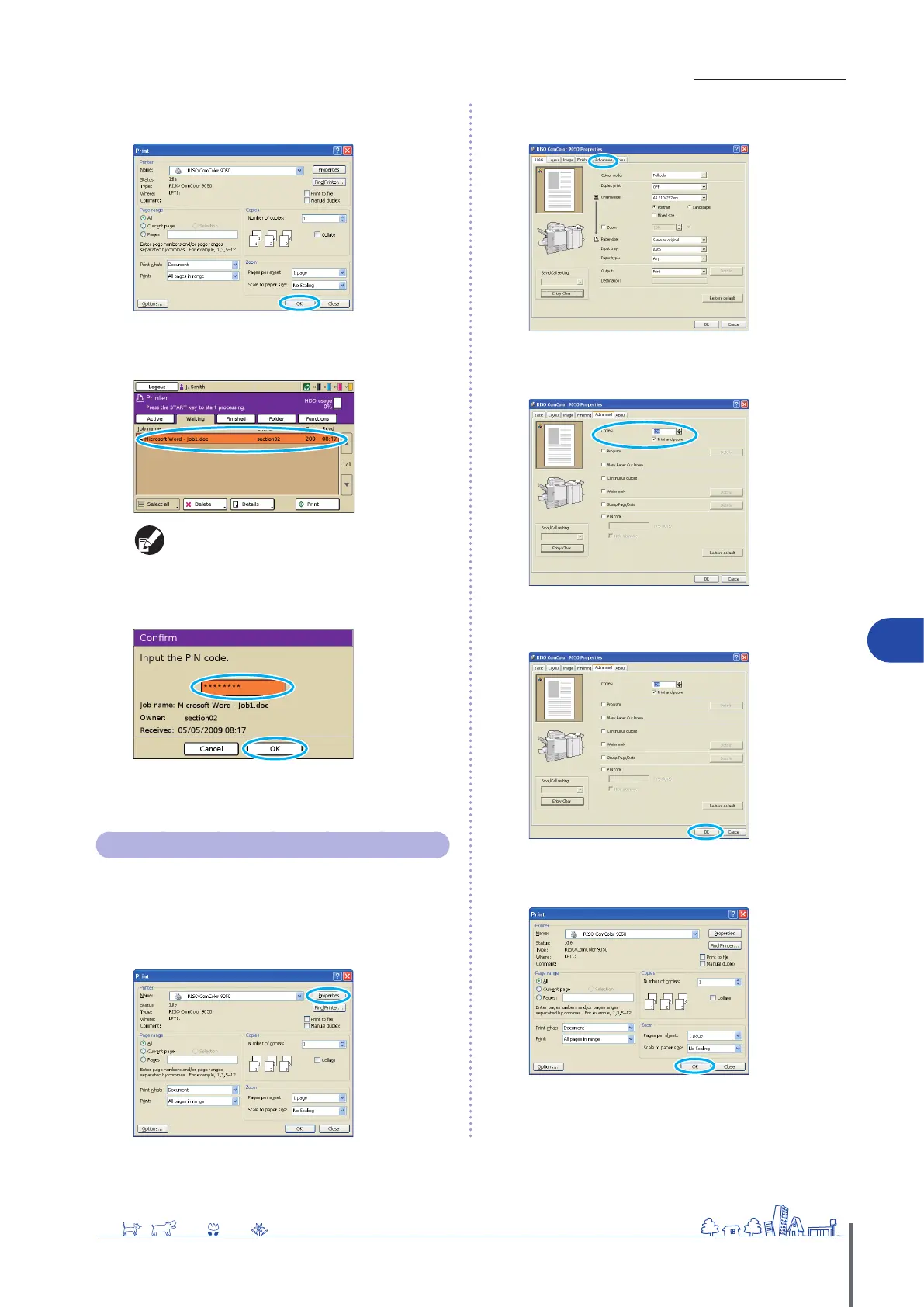 Select [Print and pause] and enter the number of
