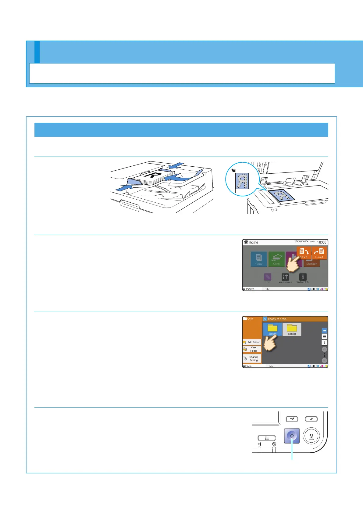 You can save the scanned data to the internal hard disk of this machine. The settings are saved for each job,