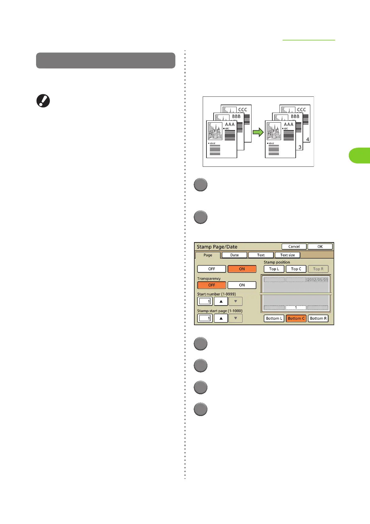 ● The page number and date cannot be stamped