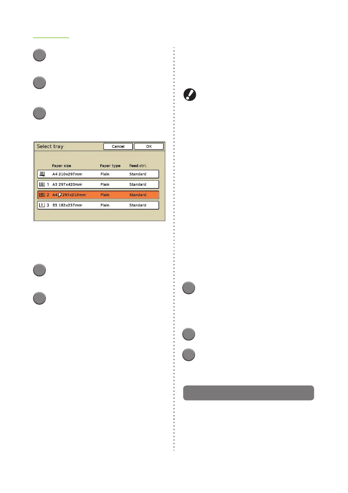 Pressing the "Select tray" button will display the