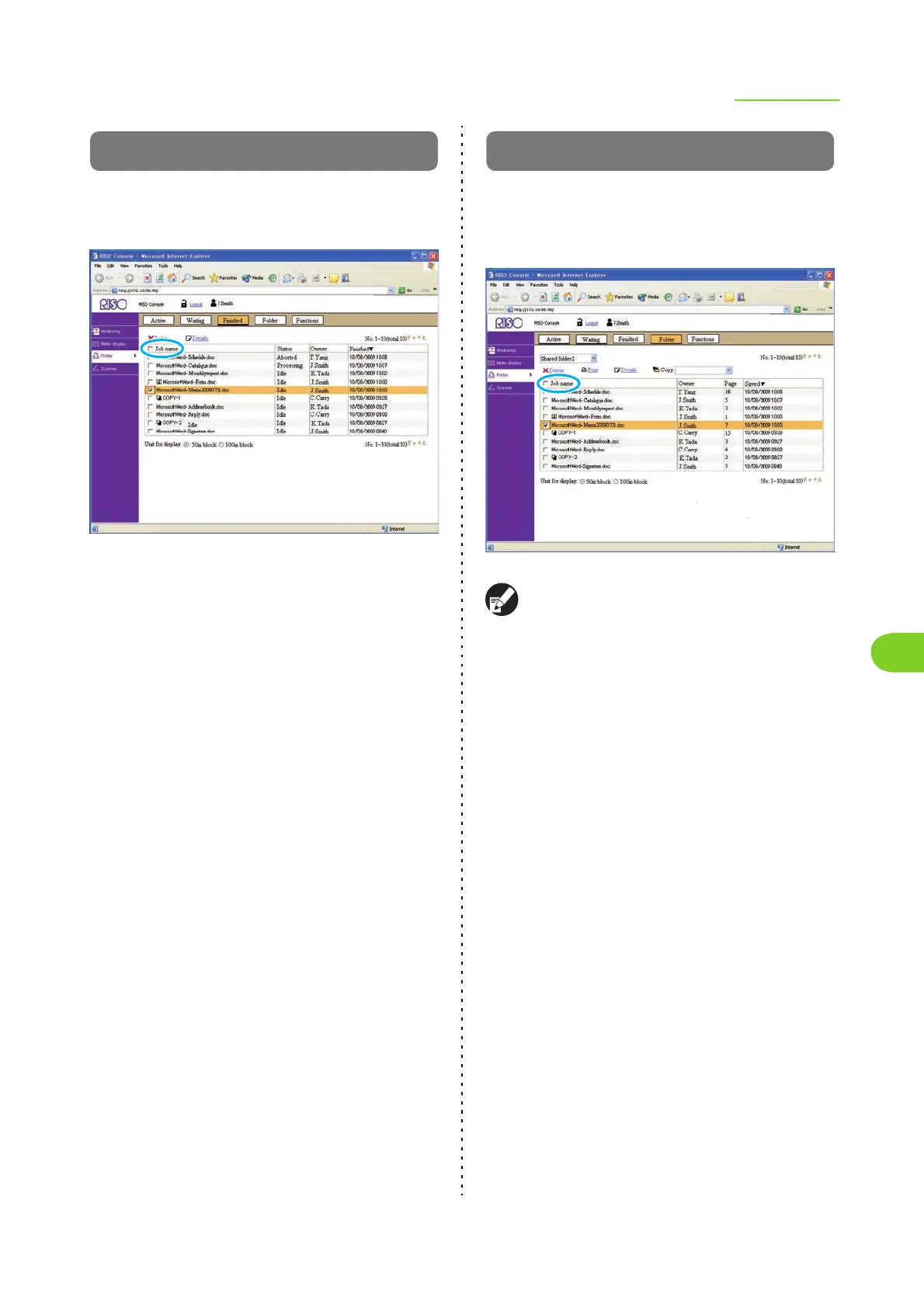 • Jobs are displayed for the folder displayed in the upper