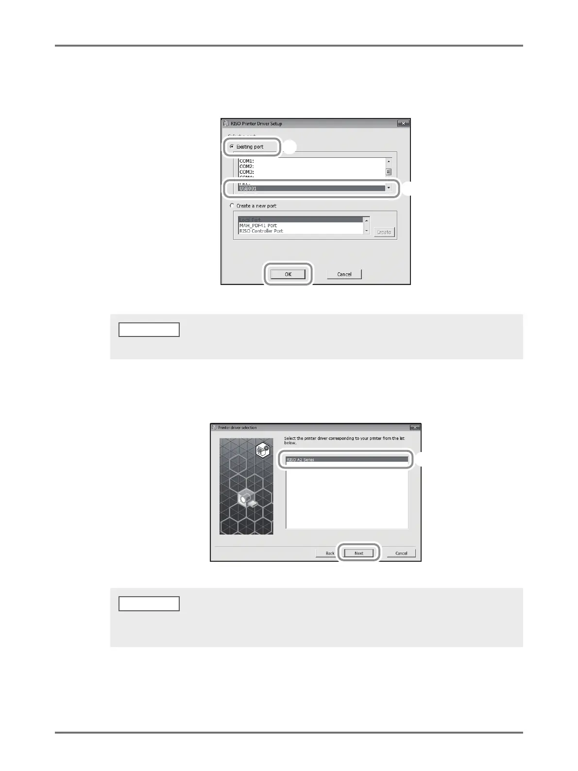 When the selected Printer Driver has already been installed, the [Procedure of installation] dialog box appears.