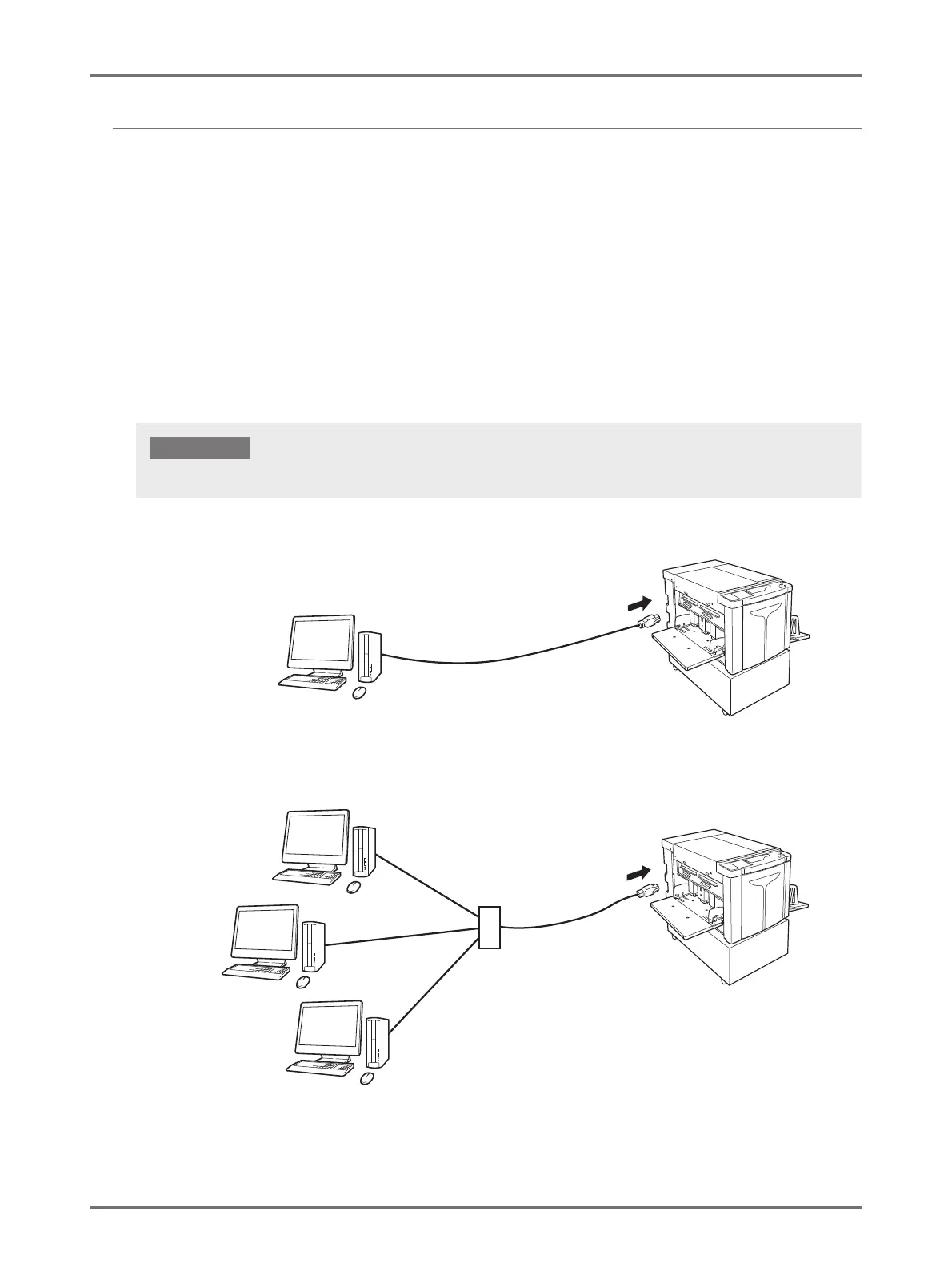 Optional network interface card, RISO Network Card is required when connecting the computer to the machine through