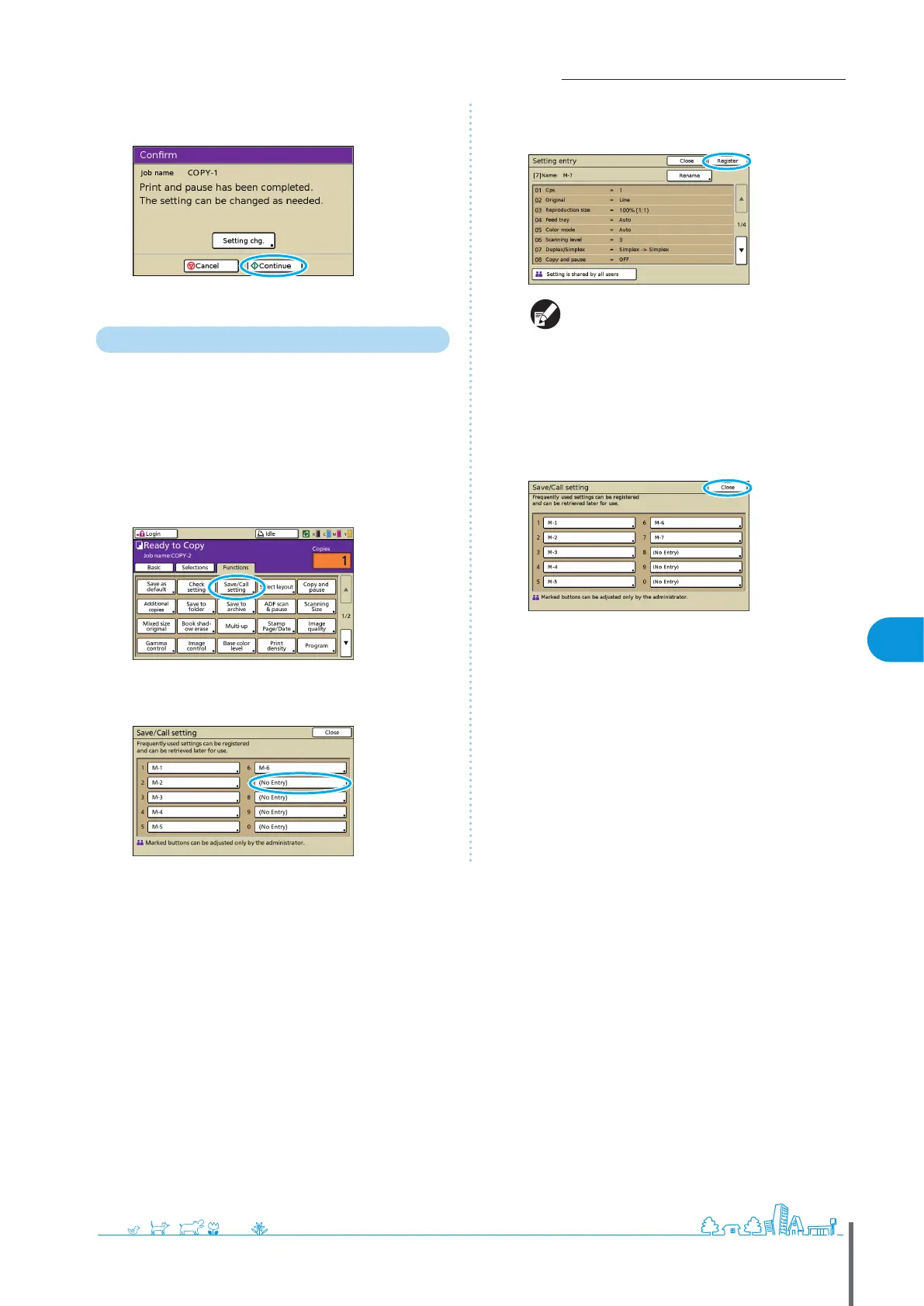 On the [Functions] screen, press [Save/Call setting].