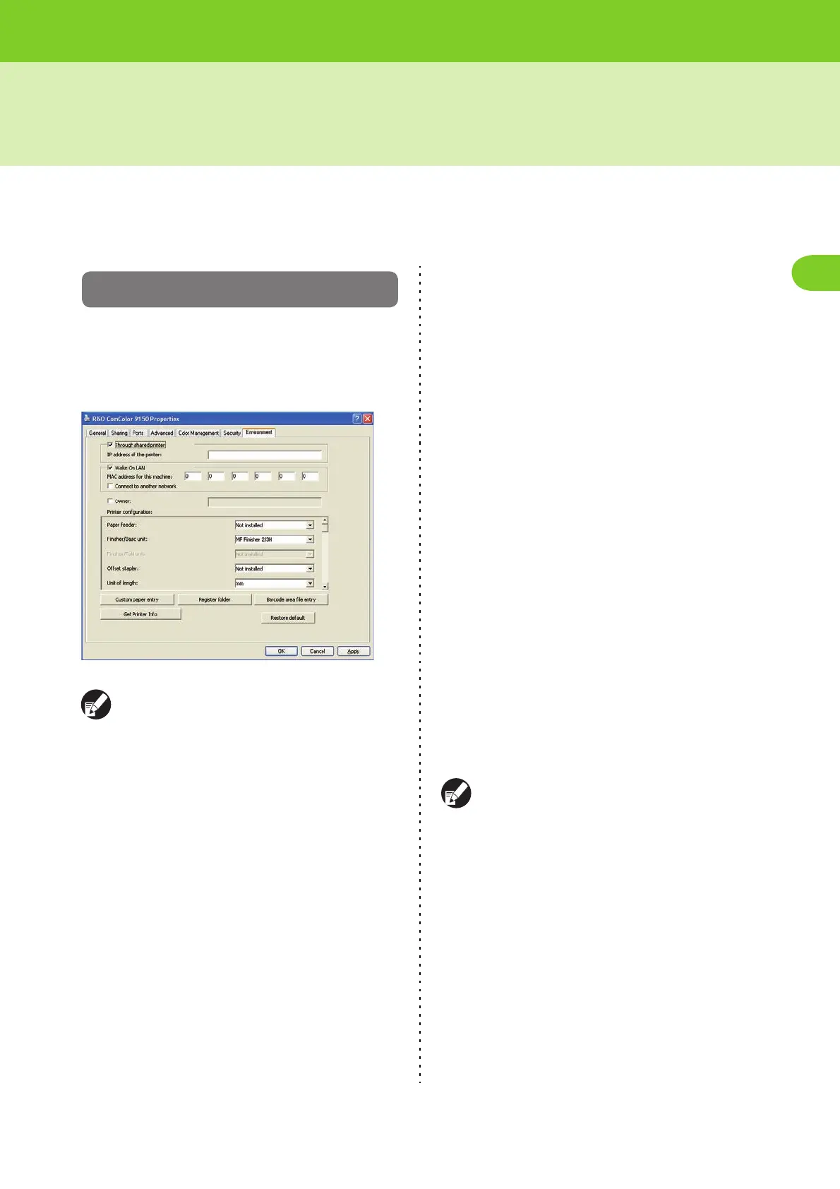 When using the printer driver for the first time or adding optional equipment to the machine, configure the