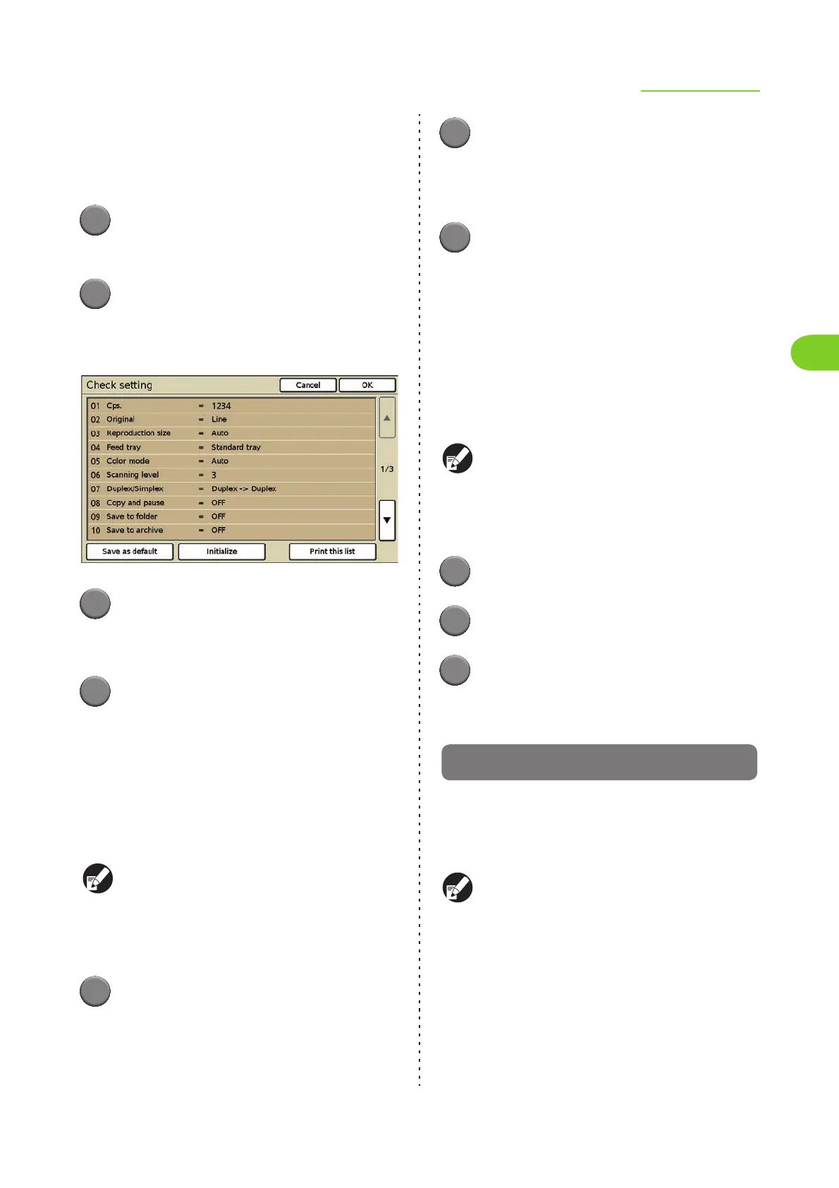 Confirm the settings and print the settings as a list.
