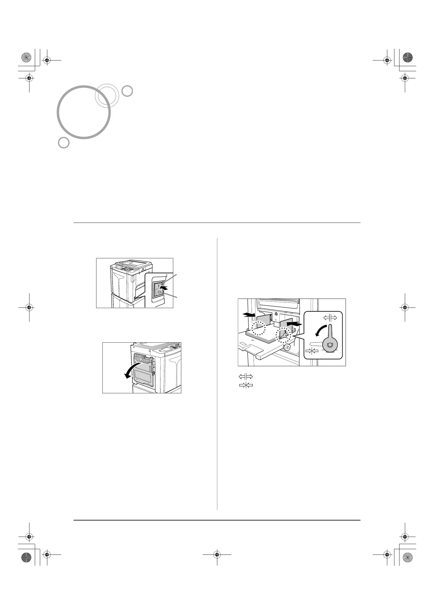 First, set up the Paper Feed Tray and Paper Receiving Tray of the machine.