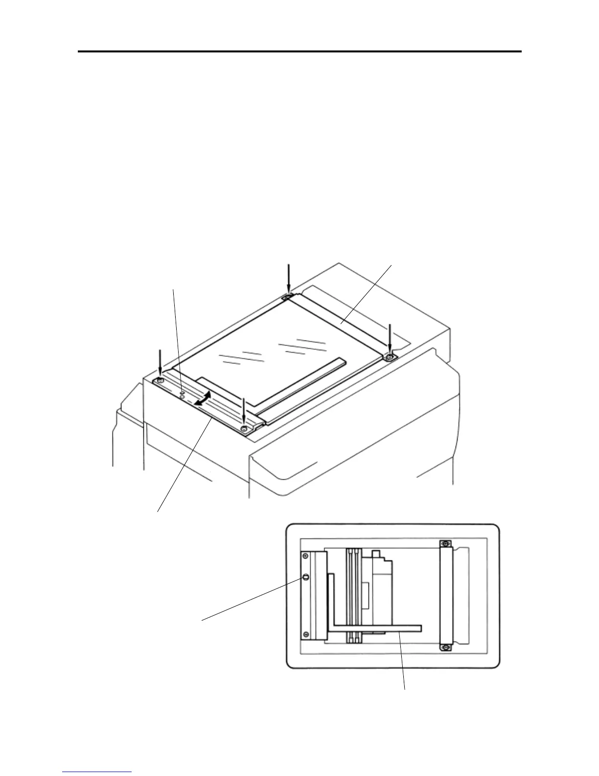 7)Shifting the stage glass and glass holder (R) toward the original stopper, fasten the holder screws (× 2).
