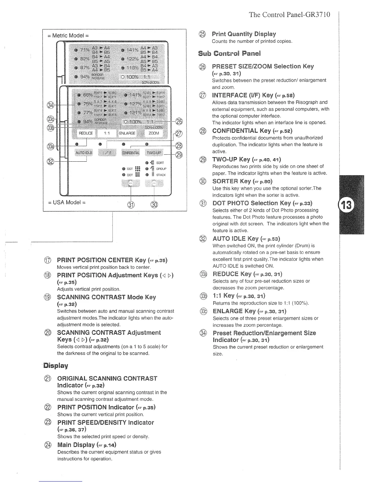 Riso GR2750 - Sub Control Panel