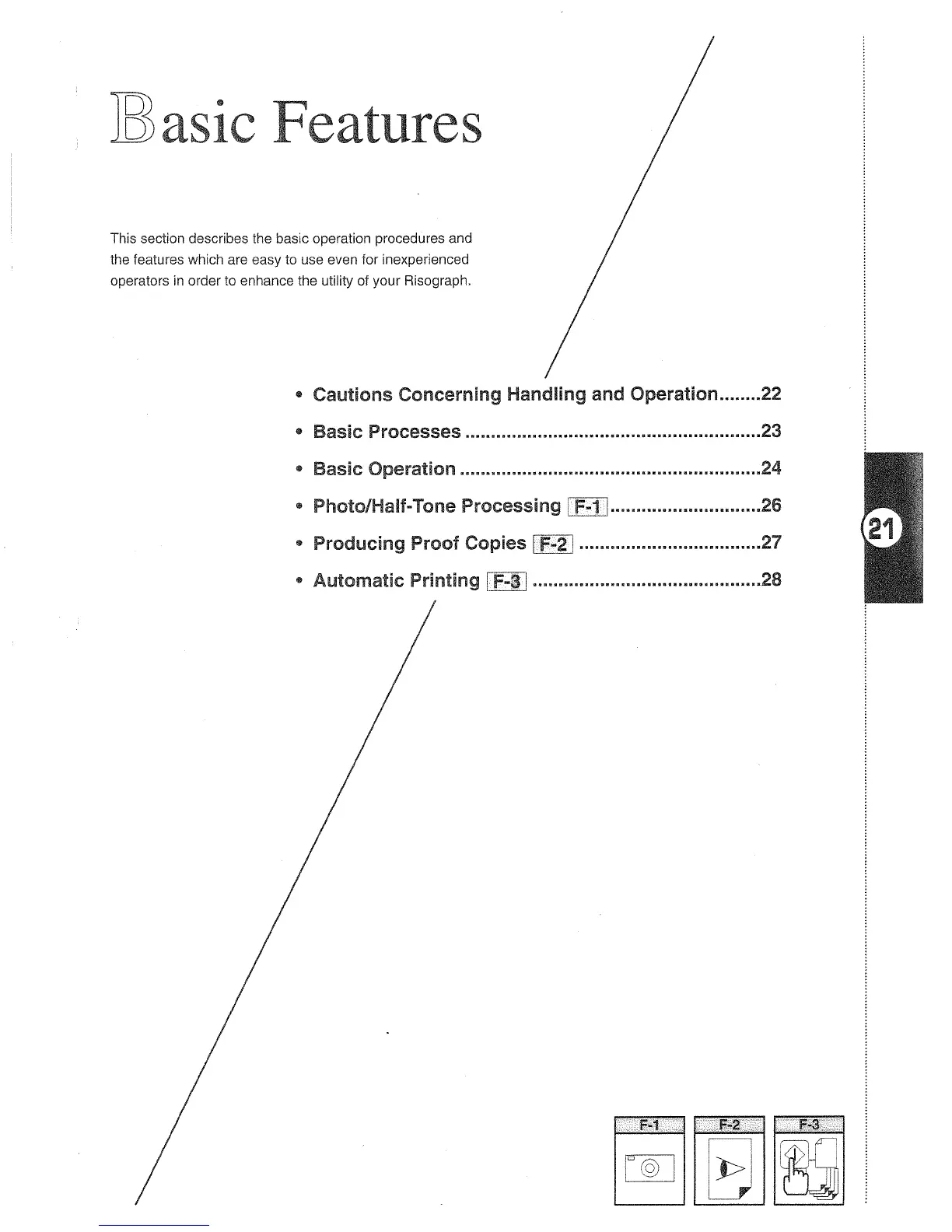 Riso GR2750 - Basic Features; Cautions Concerning Handling and Operation; Basic Operation; Photo;Half-Tone Processing