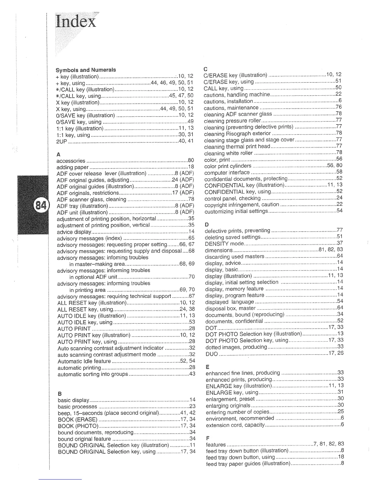 Riso GR2750 - Index