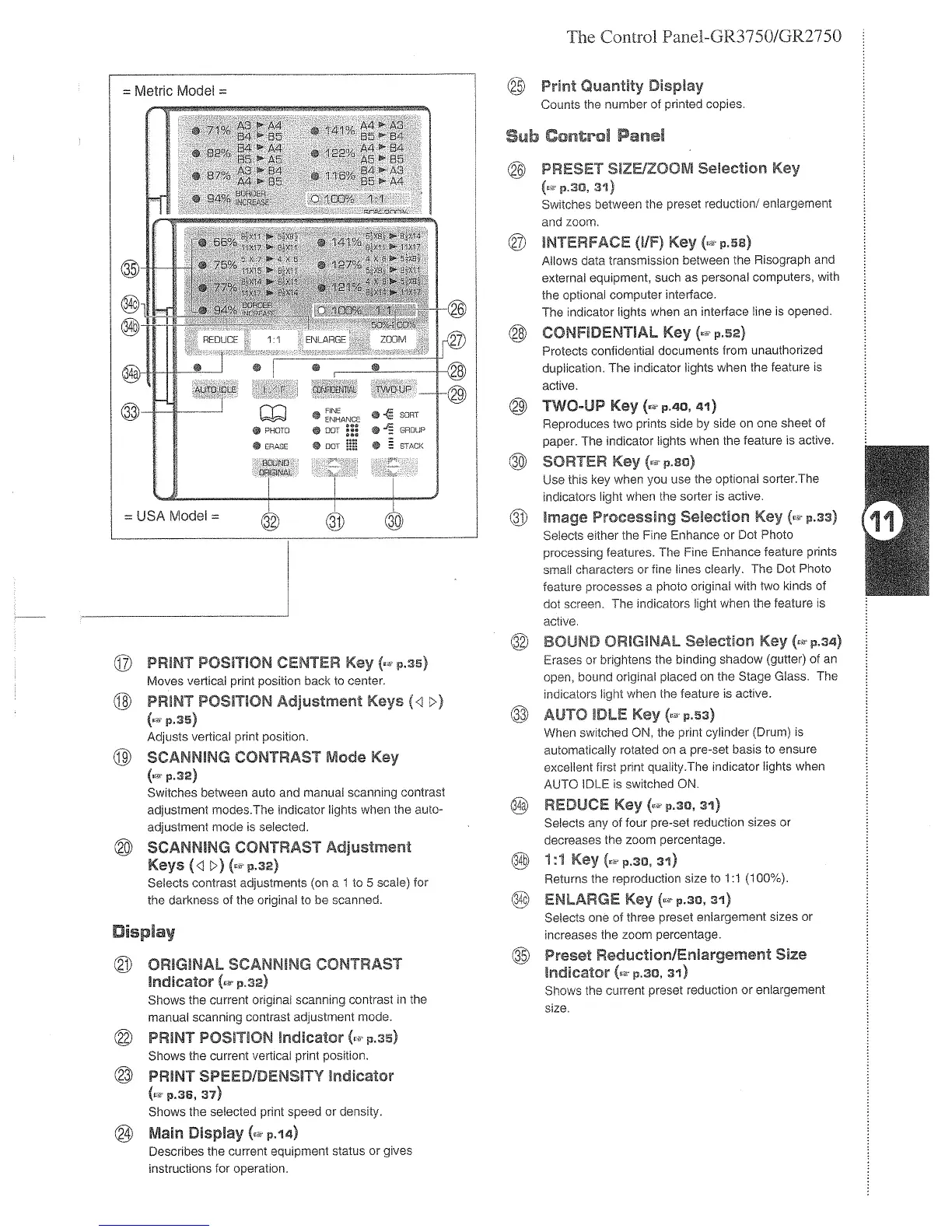 Riso GR3750 - Metric Model; Display; Sub Control Panel