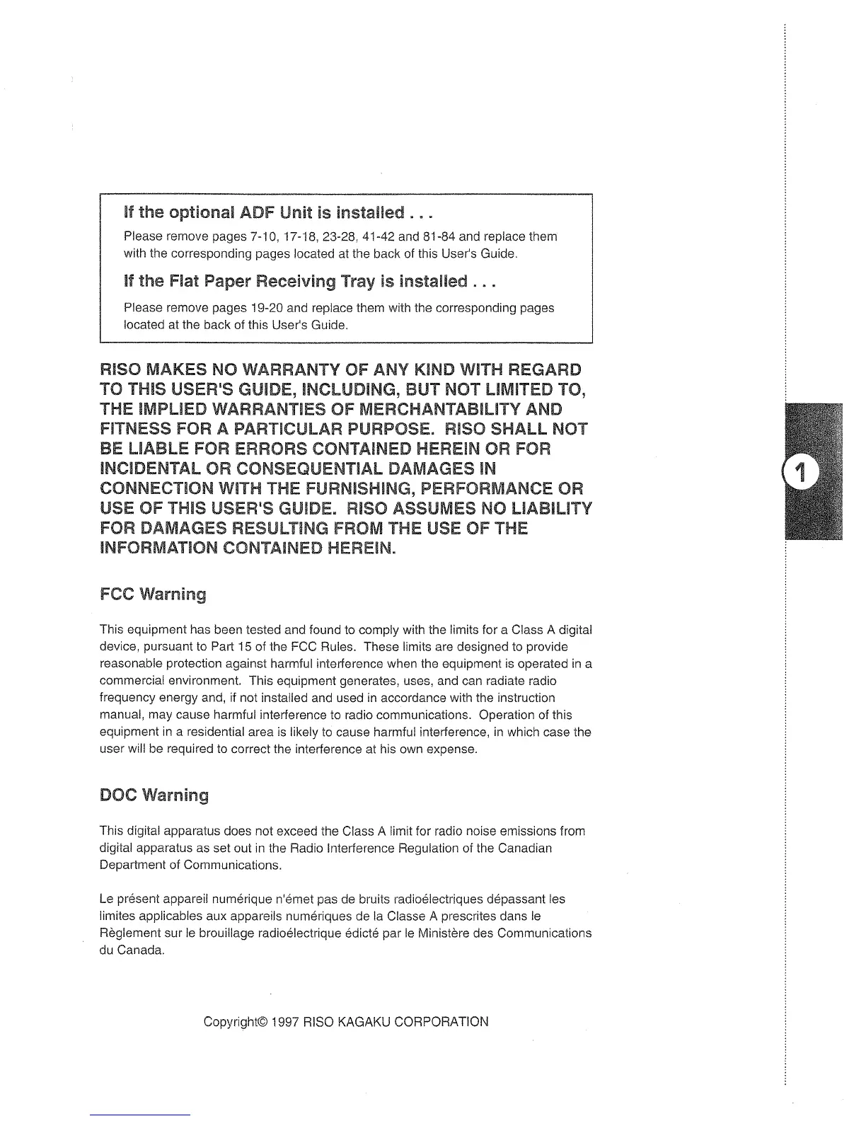 Riso GR3750 - FCC, DOC Warning