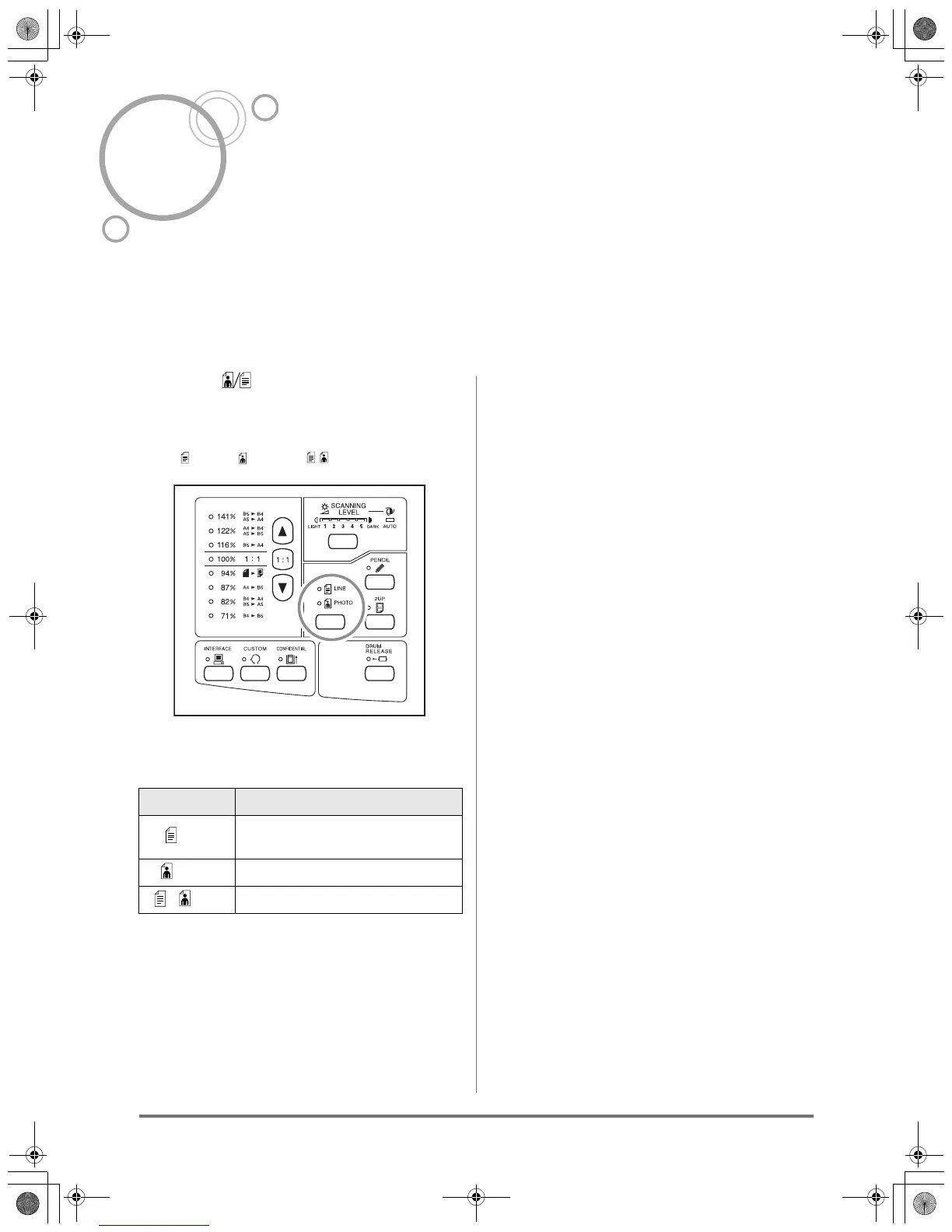 In order to make a quality master, select an appropriate mode depending on whether originals contain only Line