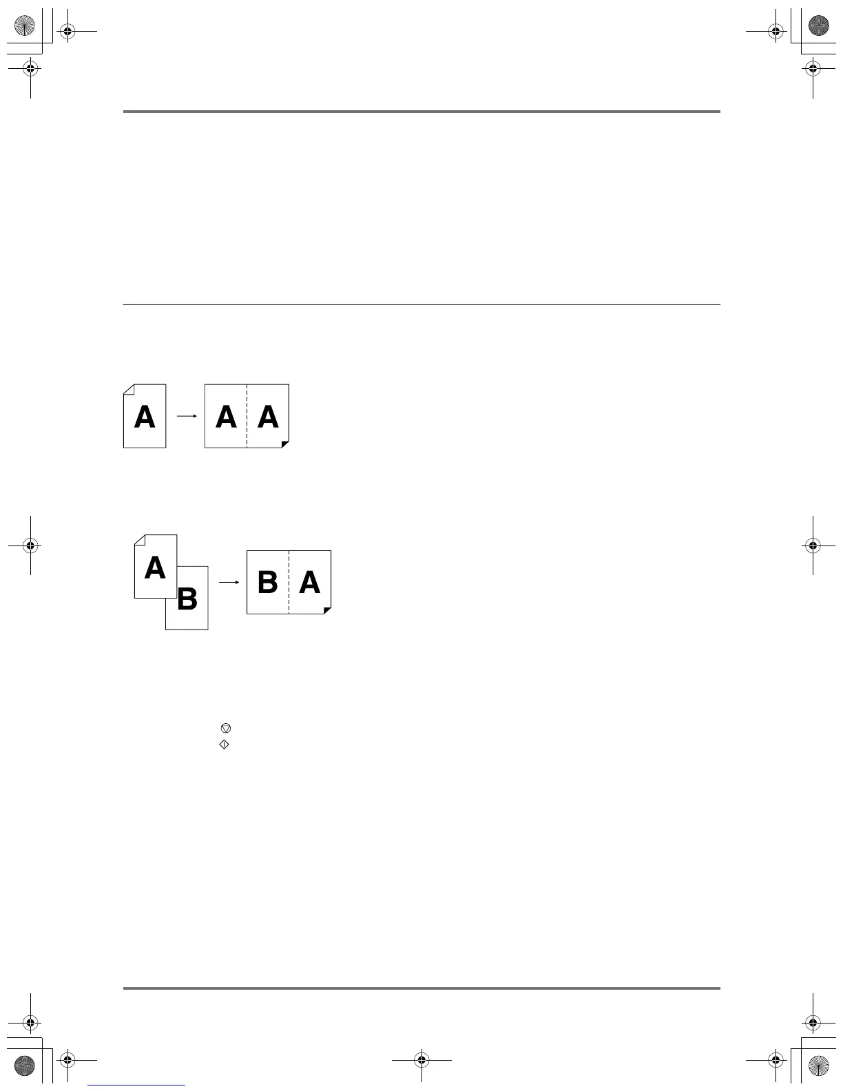 • If you press the key during the "2-Up Printing Interval Time" without placing the second original, a paper jam will