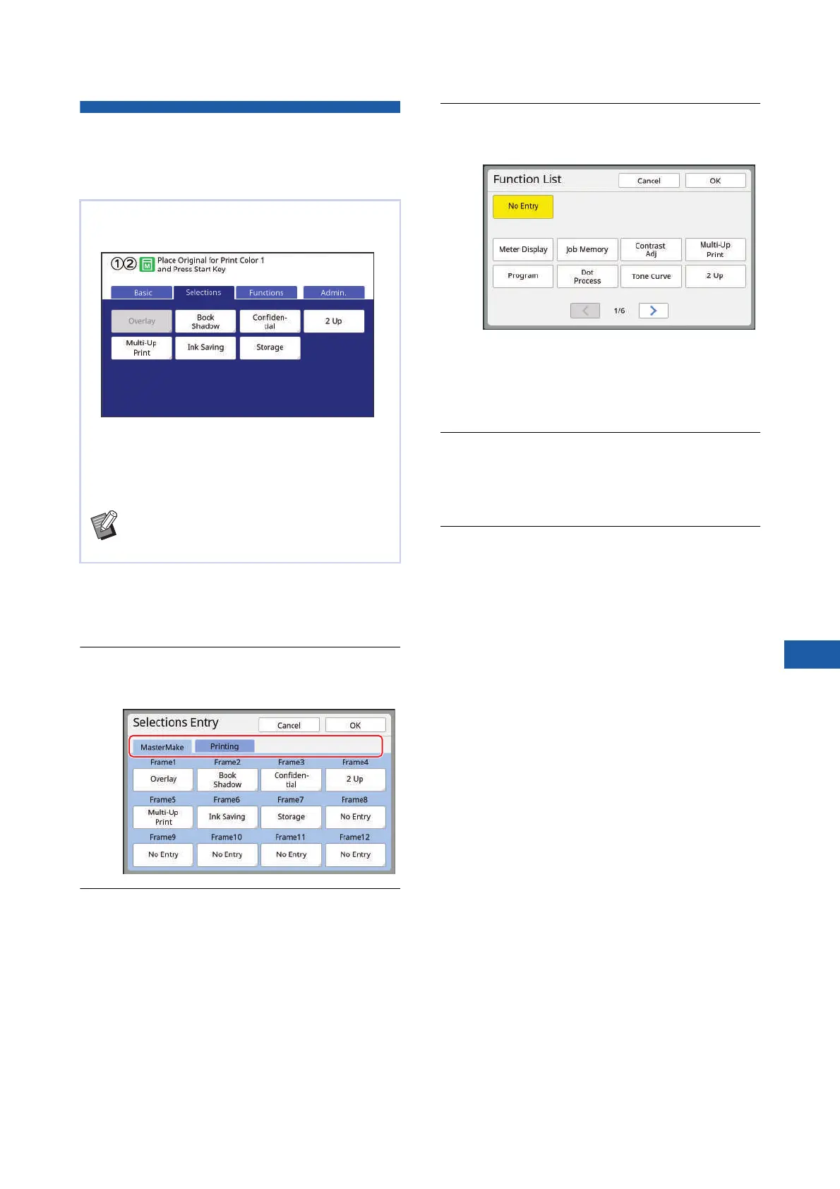 Functions in the [Selections] Tab